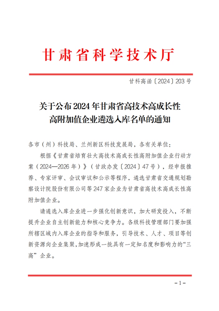 2024年甘肅高技術高成長性高附加值企業遴選入庫名單